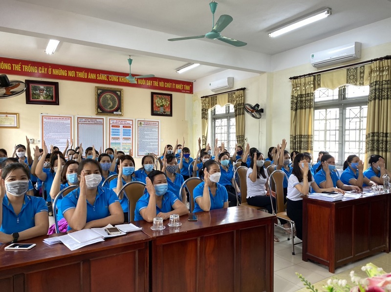Tập thể cán bộ, giáo viên, nhân viên biểu quyết các quy chế