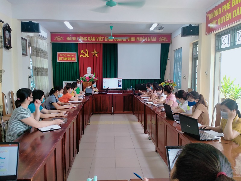 Với tinh thần đó, đồng chí Lê Thị Minh Giáp thư chi bộ, Hiệu trưởng nhà trường cũng đã phát động Tuần lễ hưởng ứng học tập suốt đời và kêu gọi toàn thể các đồng chí giáo viên, nhân viêntrong trường hưởng ứng tham gia các hoạt động của tuần lễ hưởng ứng học tập suốt đời. Năm nay do ảnh hưởng của dịch covid 19 các cô và các con chưa thể đến trường nhưng với tinh thần tập thể cán bộ giáo viên, nhân viên trong nhà trường vẫn luôn nêu cao tinh thần học tập, bồi dưỡng chuyên môn của mình qua các hình thức học trực tuyến qua zoom, meet. Sau đây là 1 số hình ảnh của tuần lễ học tập suốt đời Hình ảnh bồi dưỡng thiết kế bài giảng điện tử